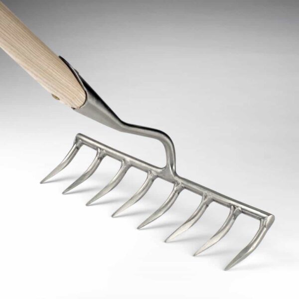 Die acht stabilen Zinken lockern den Boden auf, verbessern die Sauerstoffzufuhr und erleichtern das Einebnen von Erde. Durch die robuste Bauweise ist die Harke sowohl für kleinere Beete als auch für größere Flächen ideal geeignet.