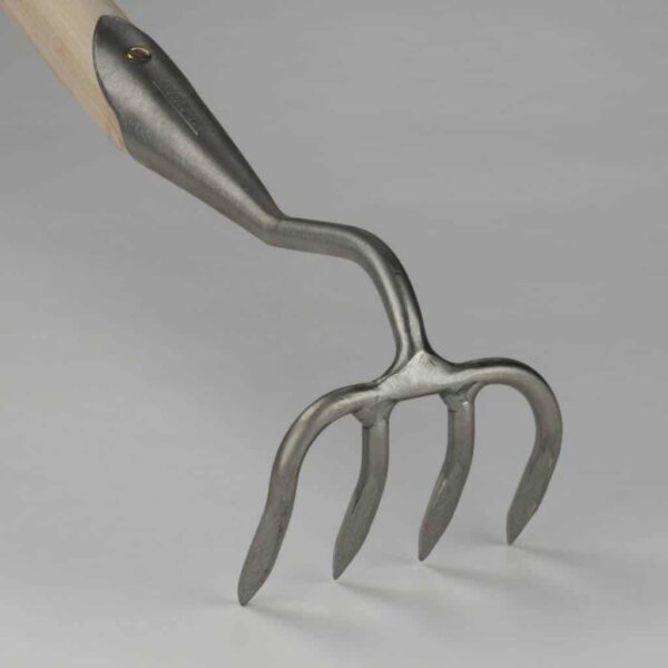 Die vier feinen Zinken lockern den Boden auf, verbessern die Sauerstoffzufuhr und erleichtern das Entfernen von Unkraut. Das schlanke Design macht die Harke ideal für Arbeiten in engen Pflanzbereichen, Hochbeeten und zwischen empfindlichen Blumen.